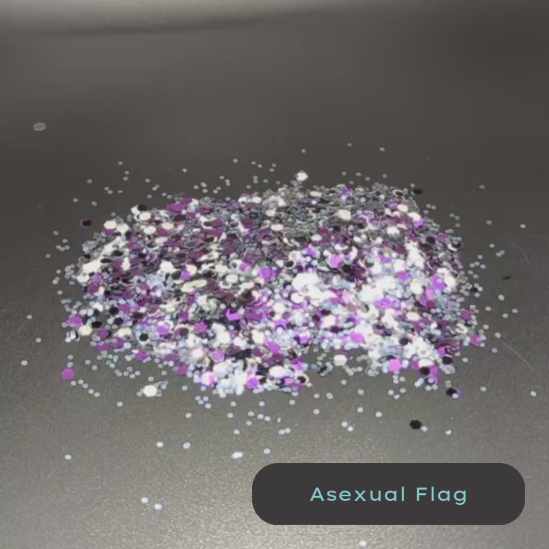 Asexual Pride Flag is a mix of all of the colors of the flag in multiple size metallic biodegradable glitter. This mix has bright, sparkly cosmetic grade glitters in black, grey, white and purple. It is also available in a glitter packed glitter gel for face, body, hair and beard, just in time for parades and celebrations. Glitter gel is available in the shop.Add glitter to your life, not harmful plastic to the ocean. StarSprinkles glitter is high quality with bright colors and lots of shine and always made of plant fiber not harmful plastic.