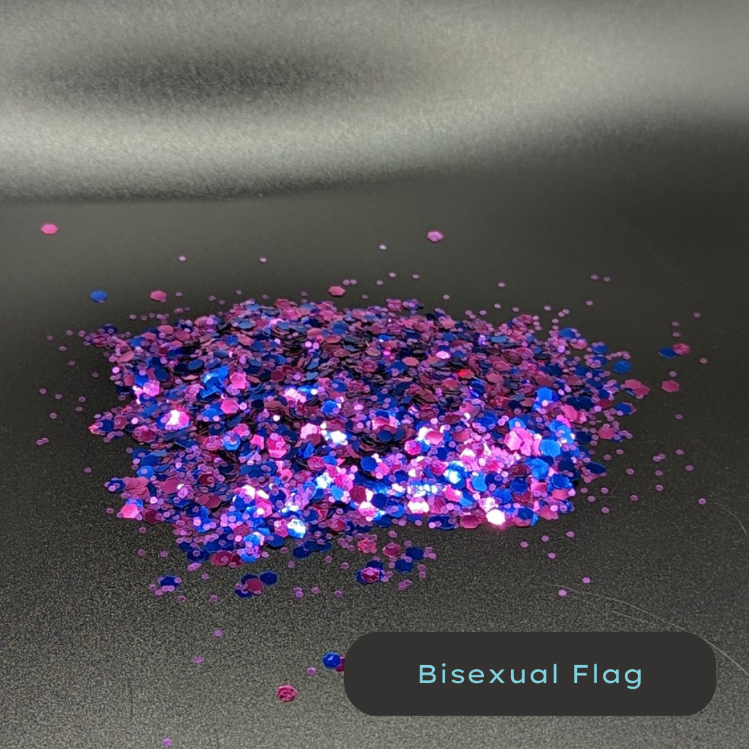 Bisexual Pride Flag is a mix of all of the colors of the flag in multiple size metallic biodegradable glitter. This mix has bright, saturated glitters in blue, purple and bright pink. It is also available in a glitter packed glitter gel for face, body, hair and beard, just in time for parades and celebrations. Glitter gel is available in the shop.Add glitter to your life, not harmful plastic to the ocean. StarSprinkles glitter is high quality with bright colors and lots of shine and always made of plant fiber not harmful plastic.