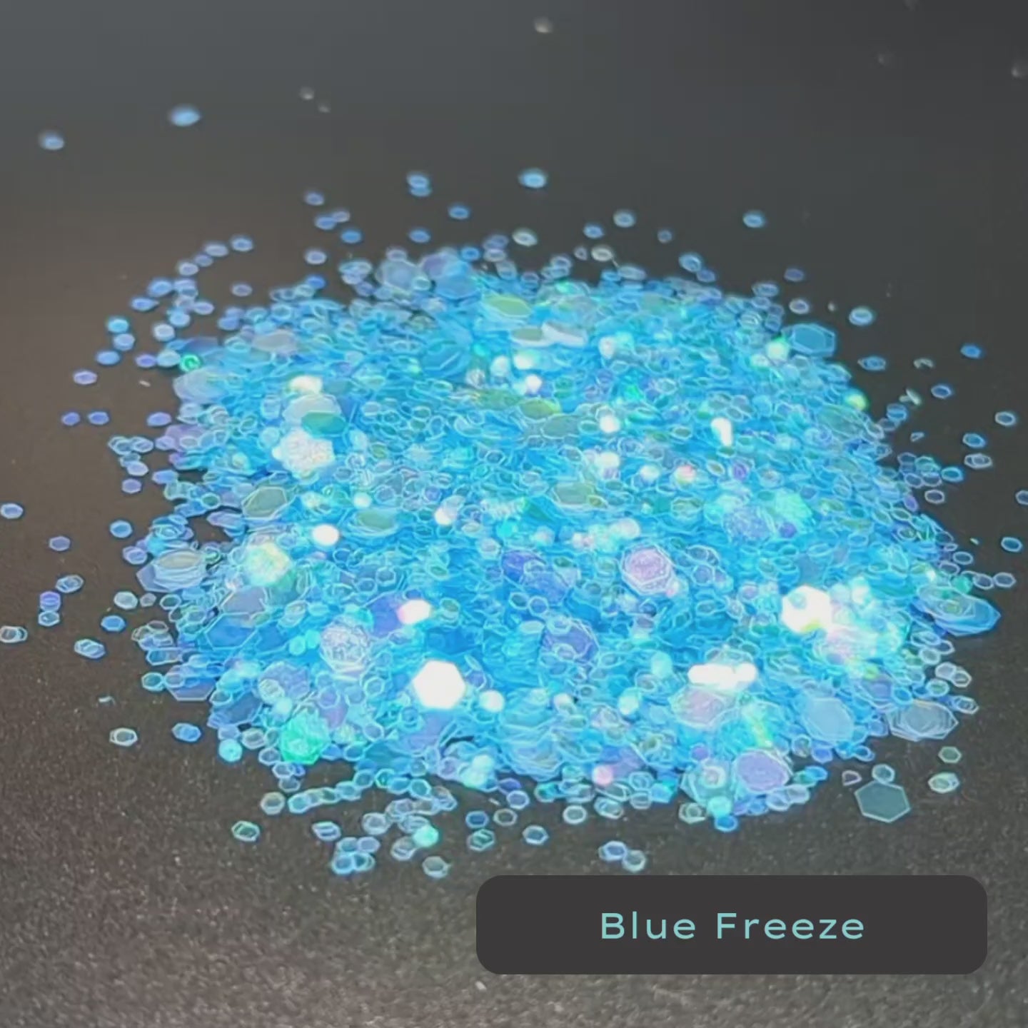 Blue Freeze is a mix of small and medium sized blue and turquoise iridescent sparkles. it's a beautiful turquoise swimming pool or Caribbean blue. the blue is really vibrant when clustered or medium to heavily sprinkled. if used sparsely the color will be less noticeable.