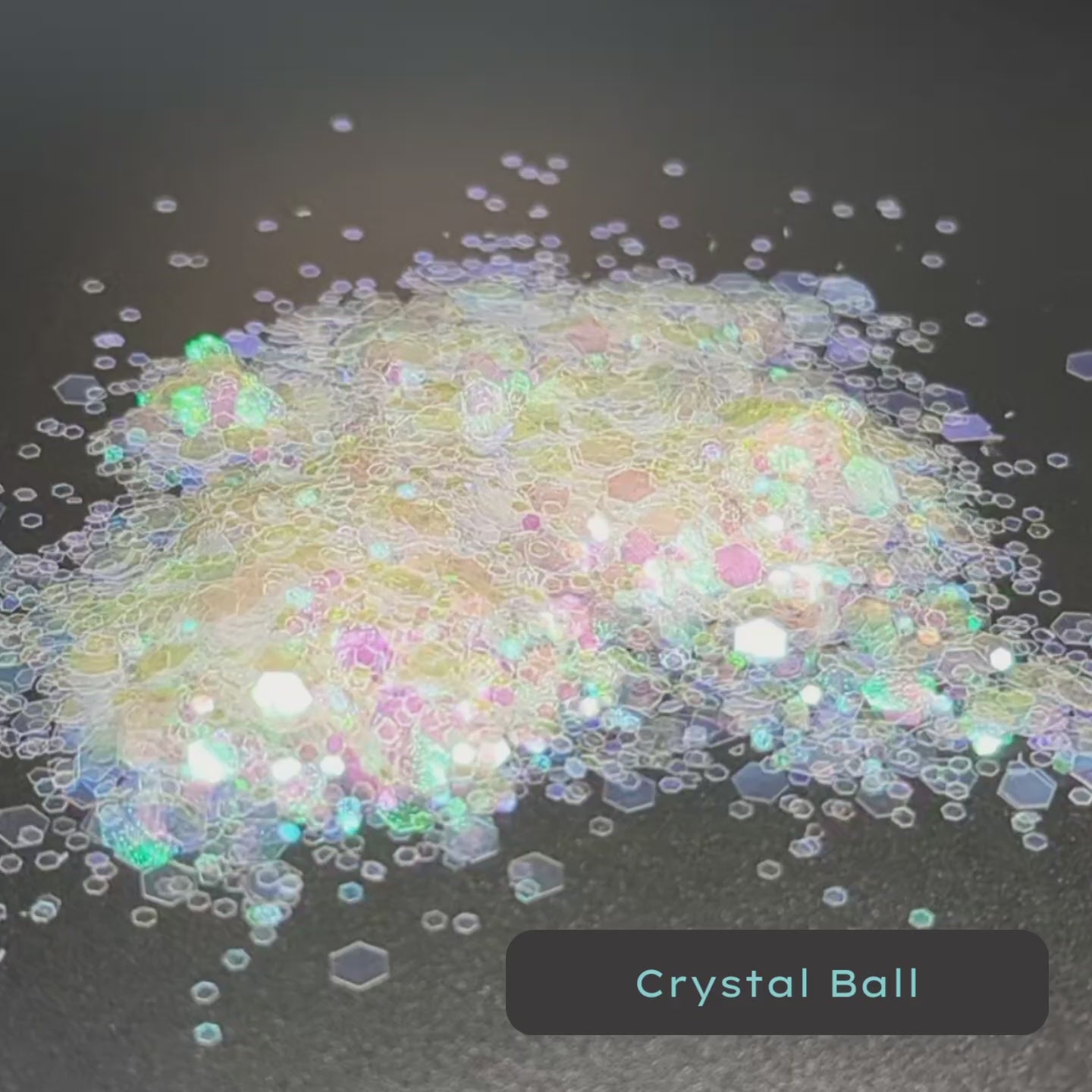 Crystal Ball is a mix of small and medium size white or clear iridescent sparkles withe blue and pink flash. This is also called unicorn skin. crystal ball has tons of sparkle. because there's limited color, all you'll get is shine. This unicorn skin plant-based glitter is perfect for any soap or bath bomb project that just needs shine without extra color. It will also give your candles that dreamy shining look.