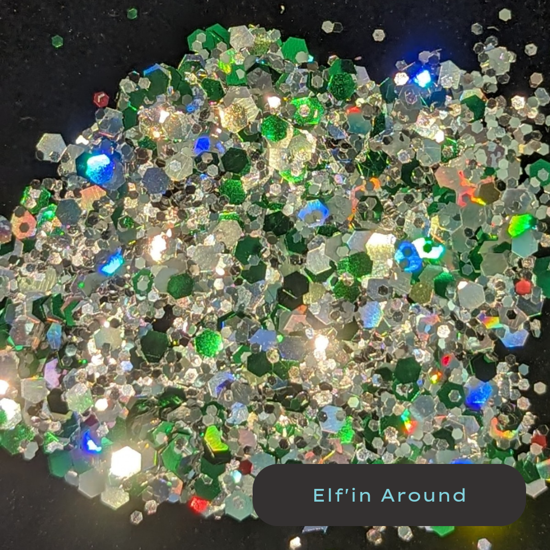 Elfin Around is a beautiful blend of saturated green and silver holographic flakes. This mix is super sparkly and a great accent too. your soap, candle or bath bomb creations.