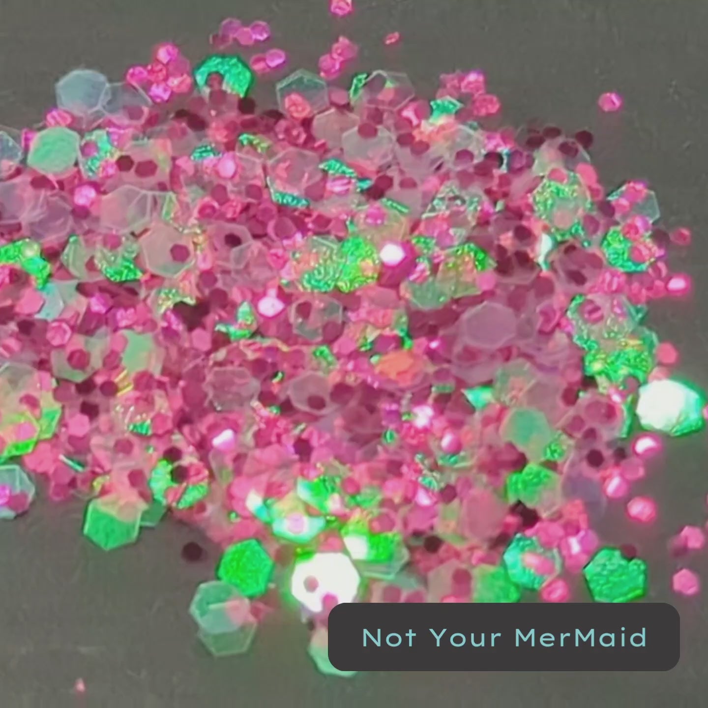 I'm Not Your Mer-Maid is small and medium size iridescent and metallic biodegradable glitter in shades of pink.
