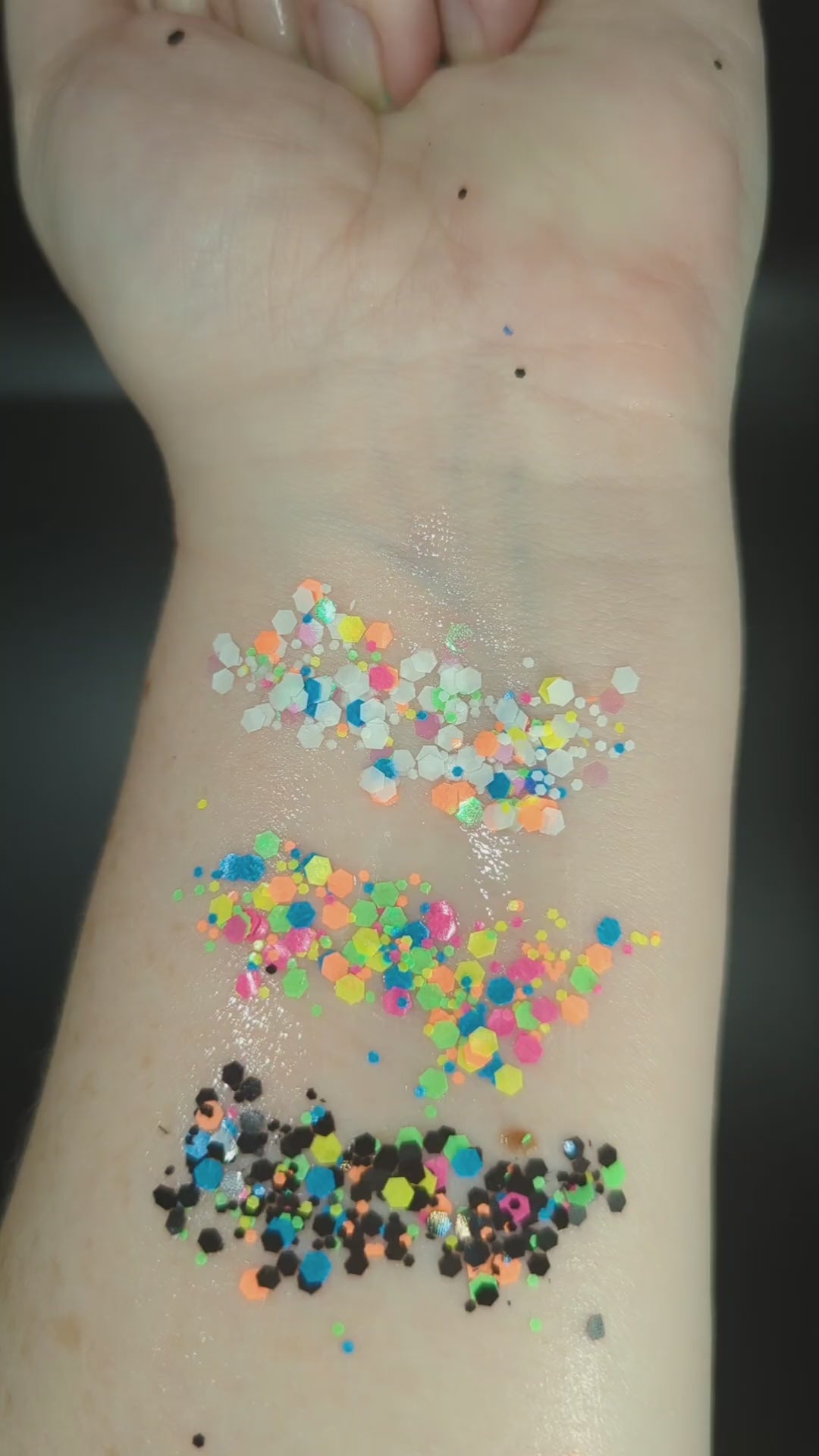This glitter will take you from shower to the club. The Neon colors are bright and shiny and glow under the blacklight. Combined with alcohol free aloe gel, this glitter is a unique face and body glitter, hair Glitter or beard glitter.