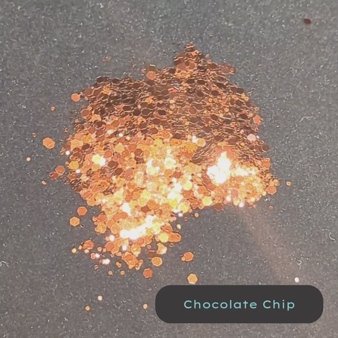 Chocolate Chip is saturated brown Biodegradable glitter in mixed sizes of plant based glitter. Alone this would be perfect as chocolate sprinkles or coffee colored sparkle accents. It could also be combined with another glitter for a custom biodegradable glitter blend.