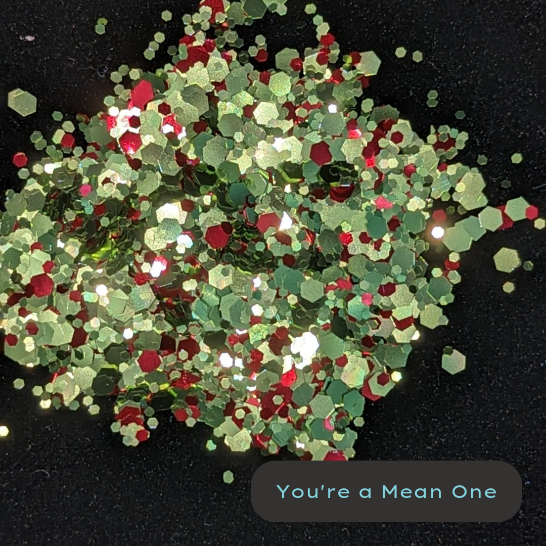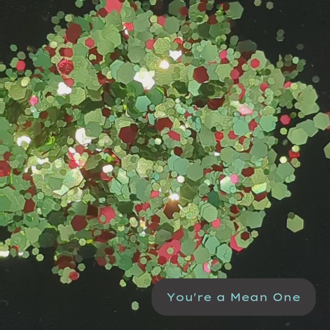 You're A Mean One is inspired by the Grinch and combines his electric green fur with a dash of red for his heart. The TikTok followers voted on this final mix and it is the perfect blend of soft green metallic and bright red metallic.
